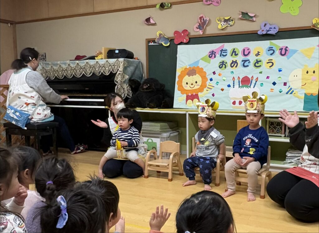 今年度の誕生会が終わりました。来月からはひよこ組はりす組に,りす組は年少組になります。また1つ成長する姿が今から楽しみですね。これからもすくすくと大きくなれますように…😊