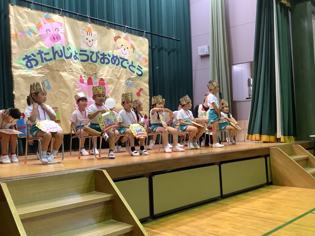 今月の主役は2名です♪みんなの前に立つことに緊張した様子でしたが,「おめでと~う!」とお祝いしてもらい嬉しそう。