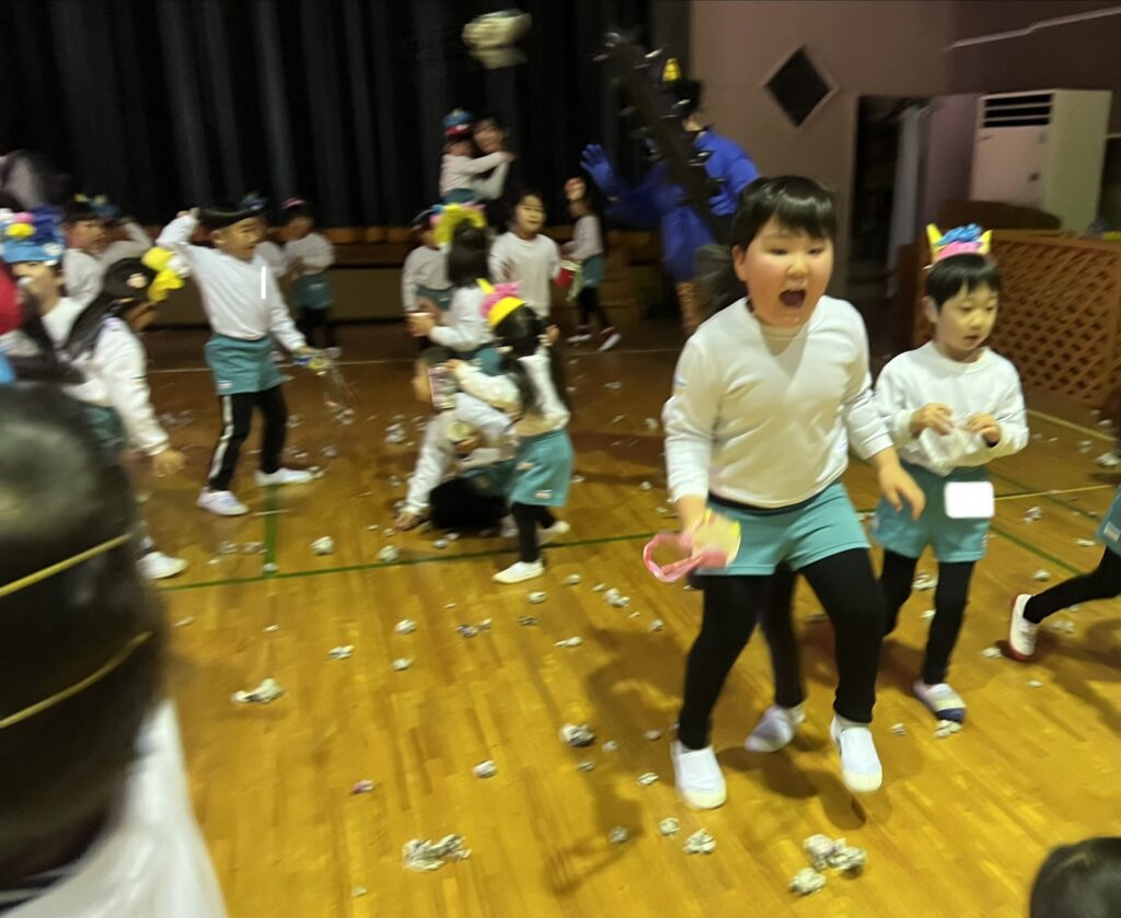 鬼の登場にびっくりして泣く子もいましたが,みんなのパワーで鬼退治に成功しましたよ★