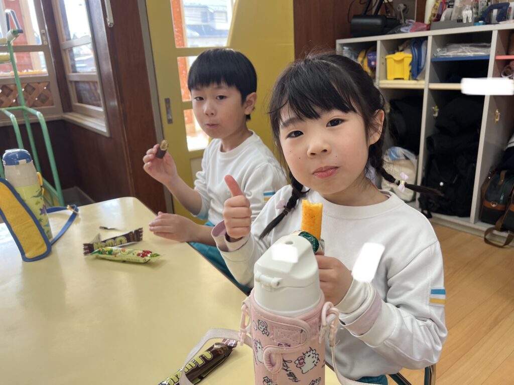 「足踏みしながらだと難しい~!」意外にも何かをしながらのしりとりは難しいようで,子ども達も苦戦しながらも楽しむことが出来ました。