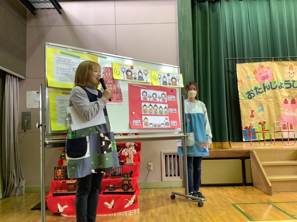 誕生会の日は,3月3日ということで園長先生から流し雛のお話を教えていただきました。